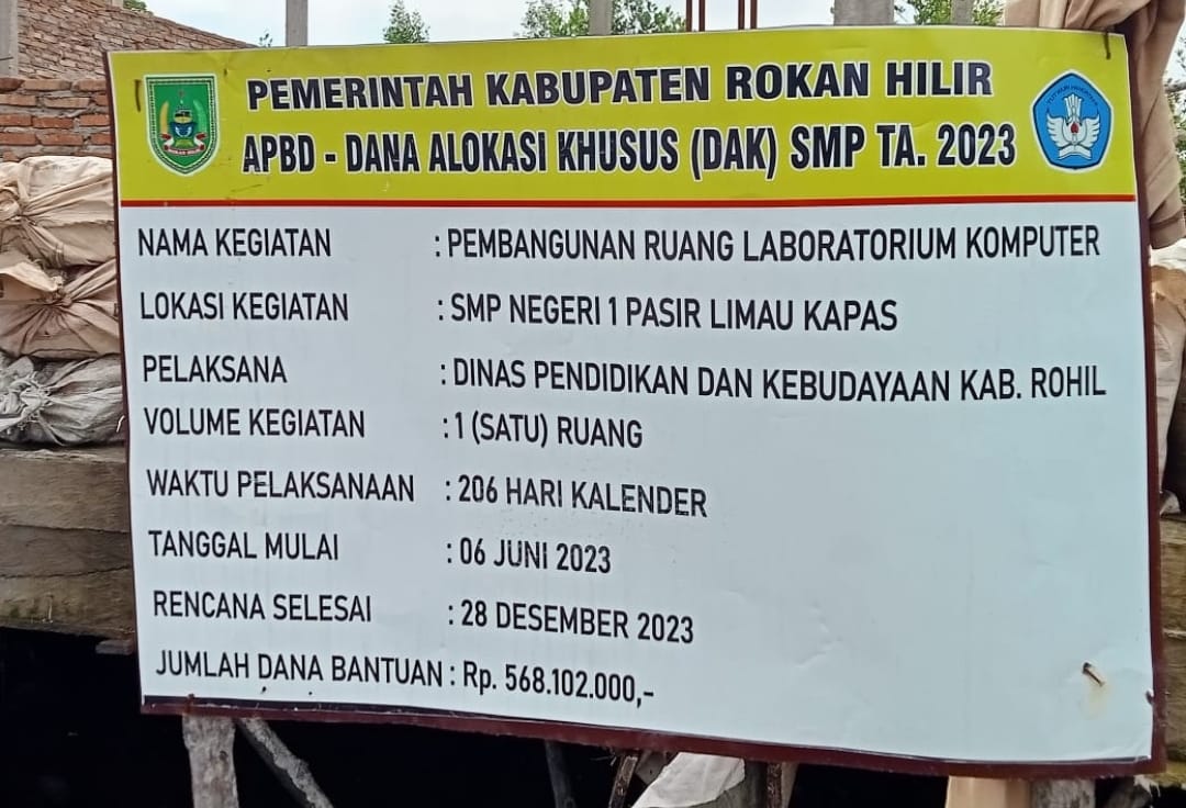 Palapatvnews | Rokan Hilir, Pada hari Selasa, 9 Januari 2024, publik kembali memperhatikan masalah yang belum terselesaikan terkait dengan pembangunan gedung sekolah di Rokan Hilir. Dalam hal ini, kinerja Dinas Pendidikan Rokan Hilir mendapat sorotan karena beberapa titik pembangunan gedung sekolah yang belum selesai. Kejanggalan dalam pelaksanaan kegiatan ini menjadi pertanyaan bagi masyarakat luas.