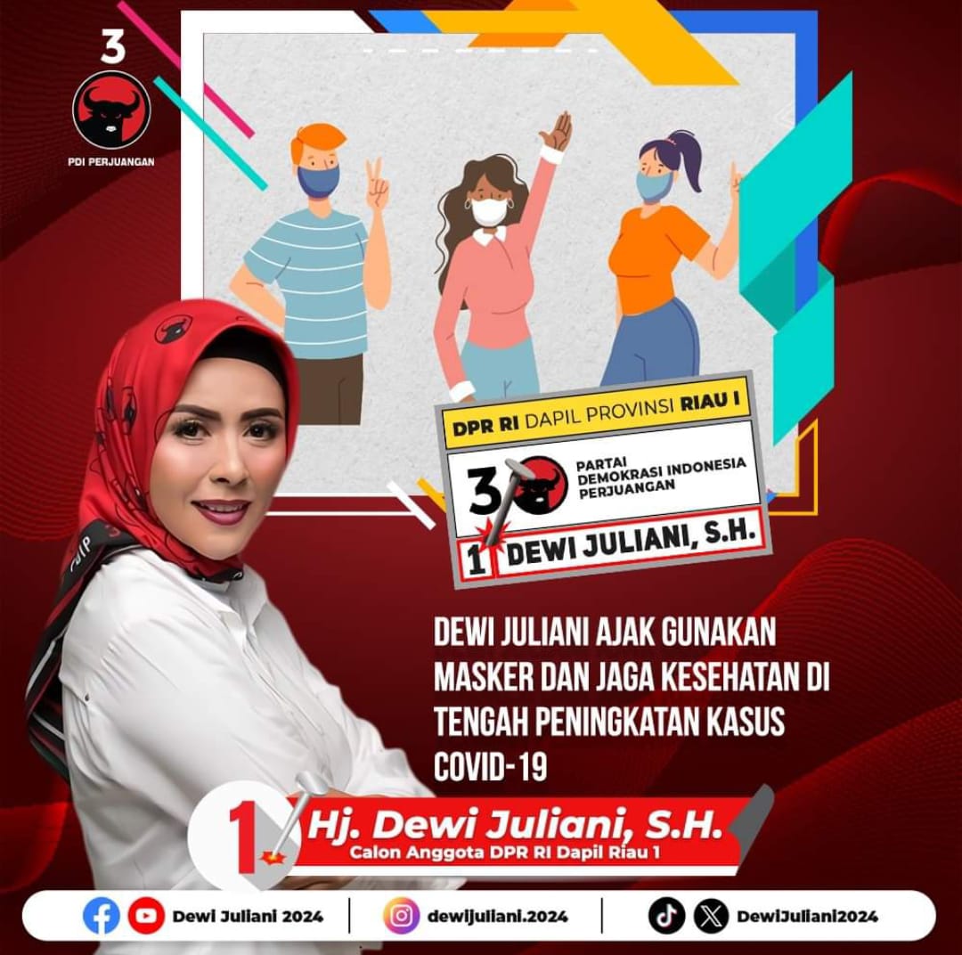 Palapatvnews | Pekan Baru, Seiring dengan kembali maraknya penyebaran virus Covid-19 di beberapa kota di Indonesia, Ketua Gerakan Nelayan dan Tani Indonesia (GNTI) wilayah Provinsi Riau, Hj Dewi Juliani SH, menghimbau kepada seluruh masyarakat untuk kembali menggunakan masker. Dewi Juliani, yang juga merupakan Caleg DPR RI dari Partai PDI Perjuangan, menilai bahwa penggunaan masker tersebut akan kembali membuat masyarakat jengah, karena sudah beberapa bulan terakhir terbebas dari pandemi.