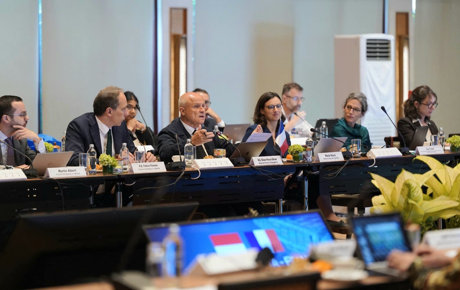 Delegasi Prancis dipimpin oleh Olivier Poivre d’Arvor, Utusan Khusus Presiden Republik Prancis untuk Kutub dan Isu-Isu Kemaritiman. Sementara delegasi Indonesia diketuai oleh Kamapradipta Isnomo, Direktur Jenderal Amerika dan Eropa Kementerian Luar Negeri RI.