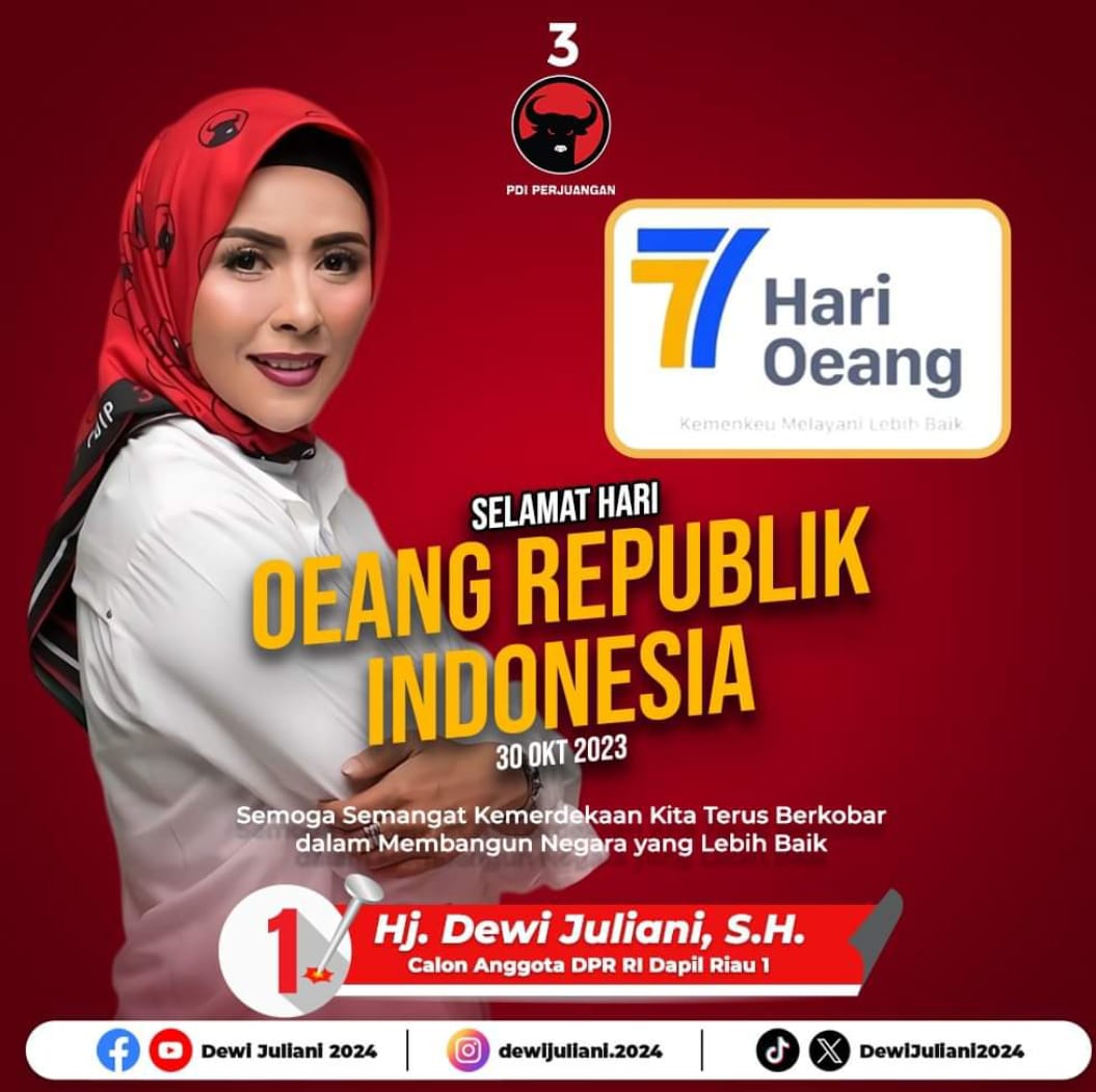 Palapatvnews | Pekanbaru, Sempena Hari Oeang Republik Indonesia (HORI) ke-77, Ketua Gerakan Nelayan dan Tani Indonesia (GNTI) wilayah Provinsi Riau, Hj Dewi Juliani SH menekankan pentingnya reformasi dalam lingkungan Kementerian Keuangan. Hal ini menurut politikus sekaligus Caleg DPR RI dari PDI Perjuangan, bahwa dengan adanya reformasi yang juga merupakan DNA di Kementerian Keuangan menunjukkan upaya untuk memperbaiki diri.