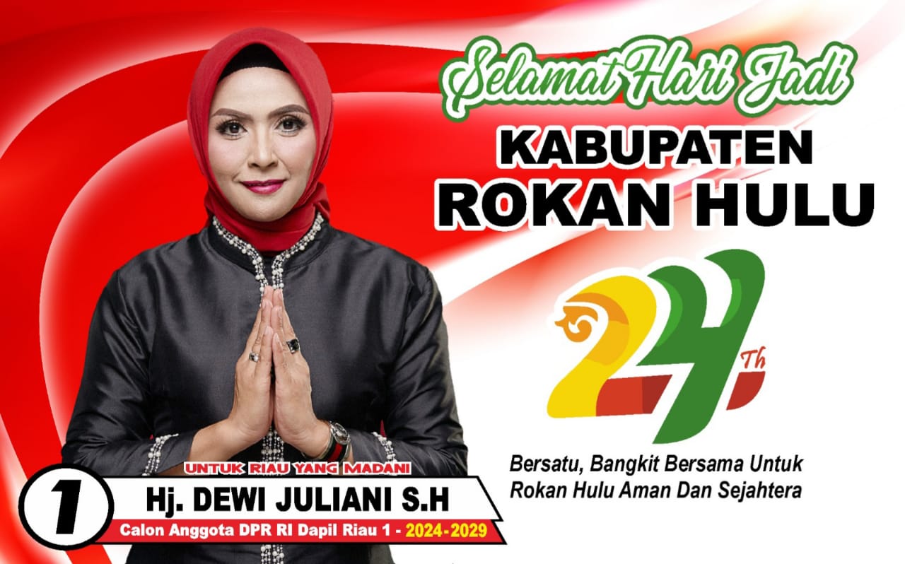 Palapatvnews | Pekanbaru, Ketua Gerakan Nelayan dan Tani Indonesia (GNTI) wilayah Provinsi Riau, Hj Dewi Juliani SH turut memberikan ucapan Selamat HUT Kabupaten Rokan Hulu yang ke-24. ” Ya secara pribadi dan atas nama GNTI Provinsi Riau, saya mengucapkan Selamat memperingati HUT kabupaten Rokan Hulu yang ke-24 tahun 2023,” ujarnya.