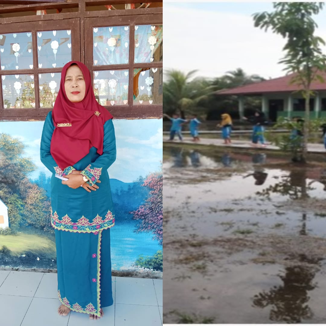 “Lapangan upacara kami selalu banjir, tergenang air setiap kali pasang datang. Saat surut pun air masih menggenang,” ujar Jusnita saat ditemui di depan kantor dewan guru, Jumat (31/10/2025).