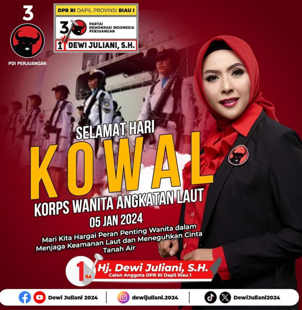 Palapatvnews | Pekan Baru, Pada tanggal 5 Januari setiap tahunnya, kita memperingati Hari Korps Wanita Angkatan Laut (KOWAL). Seiring dengan pembangunan Angkatan Laut Republik Indonesia (ALRI) pada awal dasawarsa tahun 1960-an, kebutuhan akan tenaga wanita dalam kedinasan ALRI semakin terasa. Dewi Juliani, Caleg DPR RI dari Partai PDI Perjuangan, mengajak semua masyarakat untuk menghargai peran penting wanita dalam menjaga keamanan negara.