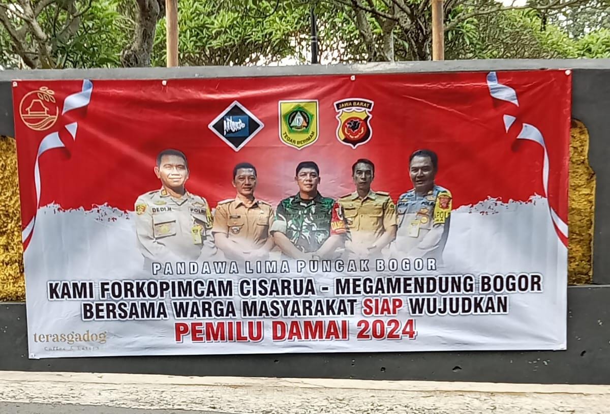 Palapatvnews | Bogor, Menjelang pelaksanaan Pemilihan Umum (Pemilu), Forkopincam Cisarua dan Megamendung Kabupaten Bogor melakukan langkah strategis dengan menggelar spanduk damai di setiap tempat keramaian atau tempat berkumpulnya massa. Langkah ini dilakukan baik untuk massa yang berasal dari luar Kabupaten Bogor maupun massa yang berasal dari daerah Bogor sendiri. Sabtu, (06/01/24).