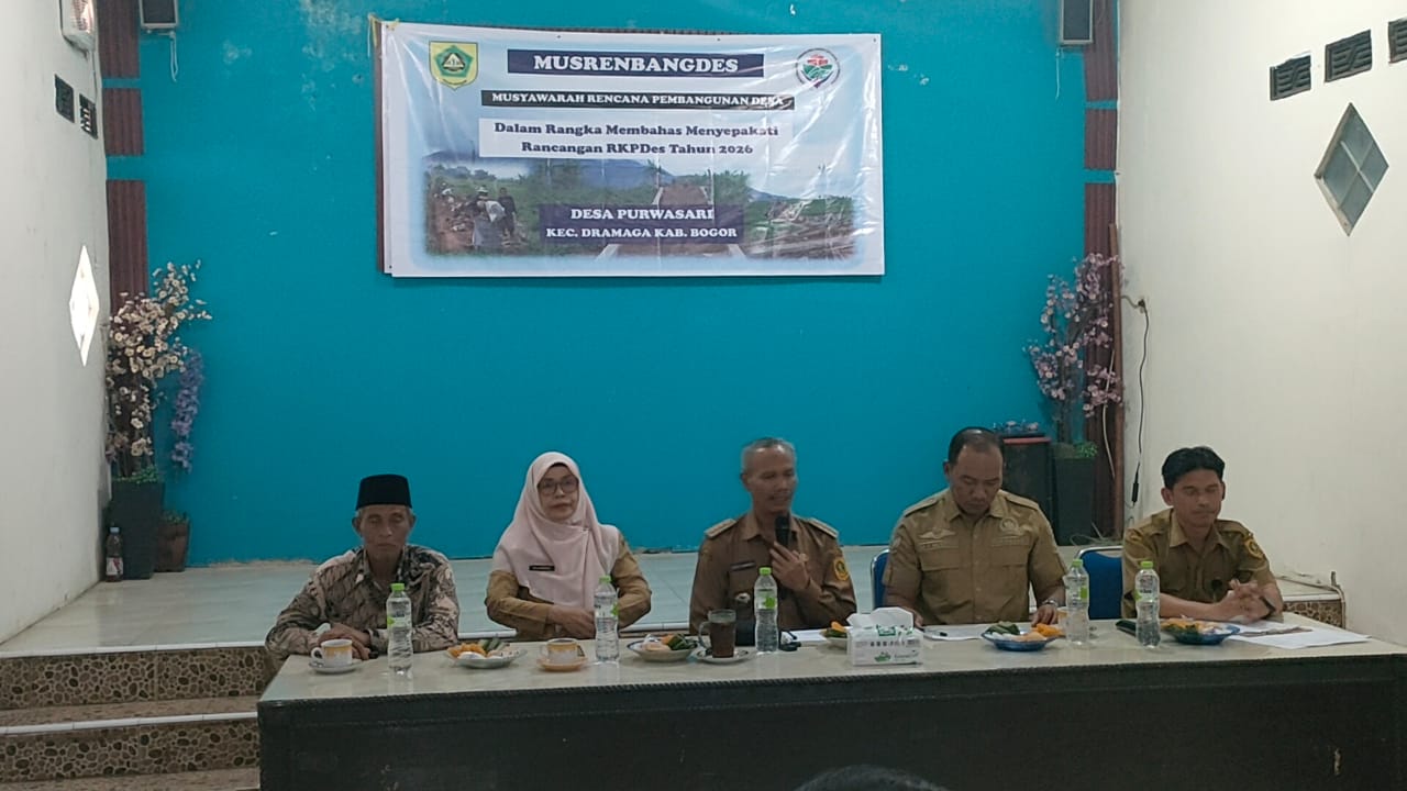Bogor – Pemerintah Desa Purwasari, Kecamatan Dramaga, Kabupaten Bogor, melaksanakan Musyawarah Perencanaan Pembangunan Desa (Musrembangdes) di Aula Kantor Desa. Kegiatan ini dihadiri Camat Dramaga, Atep S. Sumaryo, SH, MH, Kepala Desa Purwasari Muh. Yusup Mustopa, SIP, Ketua BPD, kepala sekolah, Ketua RT/RW, kader desa, tokoh agama, serta tokoh masyarakat.