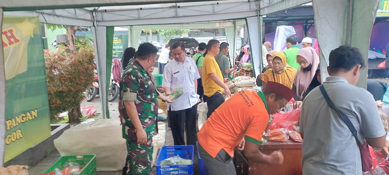Palapatvnews | Bogor, Anggota Koramil 0621-10/Cisarua telah melaksanakan tugas pengamanan dan pengawasan pelaksanaan pasar murah/bajar murah Ramadhan yang diselenggarakan oleh Dinas Perdagangan Kabupaten Bogor. Kamis, (04/04/24). Kegiatan ini berlangsung di halaman kantor kecamatan Cisarua. Pasar murah ini sangat membantu masyarakat dalam memenuhi kebutuhan pokok menjelang Hari Raya Idul Fitri dengan harga yang lebih terjangkau dibandingkan harga pasar.