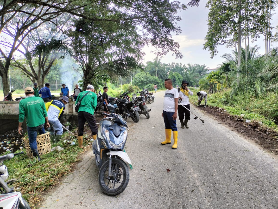 Rokan Hilir | Pemerintah Desa (Pemdes) Rantau Panjang Kiri bersama Badan Permusyawaratan Desa (BPD) melaksanakan kegiatan gotong royong membersihkan rumput liar di sepanjang Jalan Wan Najim atau Jalan Stadion, Minggu (27/07/2025).