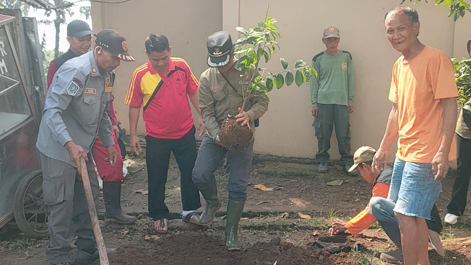 Kegiatan Jumsih diawali dengan aksi bersih-bersih lingkungan di sejumlah titik, diikuti dengan penanaman pohon di SDN Cilubang 2 dan Mushola Al-Ikhlas.