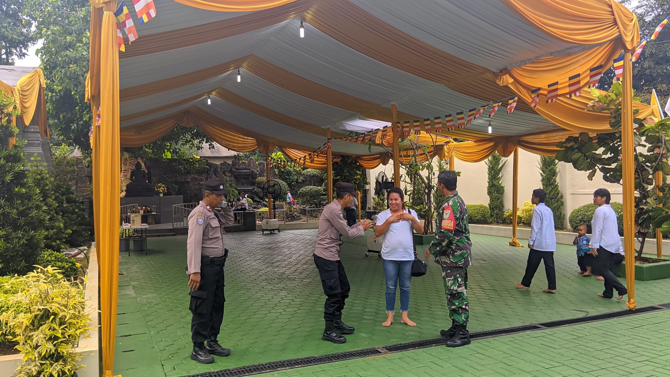 Selain itu, pengawasan keamanan secara keseluruhan juga menjadi tanggung jawab Babinsa. Ini termasuk melakukan patroli rutin di area sekitar Vihara untuk mencegah potensi gangguan, baik dari segi keamanan fisik maupun ancaman lainnya. Serda Topo Raharjo dan timnya juga sigap dalam menangani situasi darurat, dengan selalu siap siaga di lokasi selama kegiatan berlangsung.