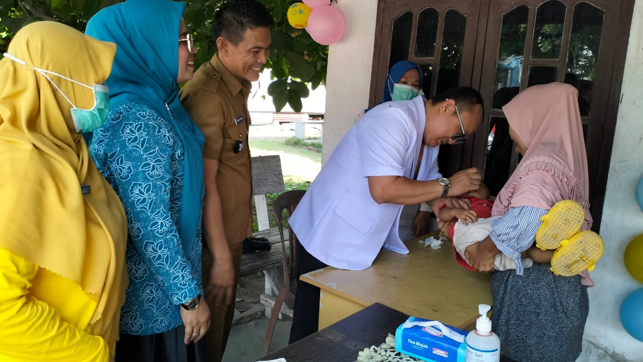 Rokan Hilir | PJ. Penghulu Mesah didampingi oleh Tim Penggerak PKK (Pembinaan Kesejahteraan Keluarga) serta sejumlah tenaga kesehatan (nakes), Bhabinkamtibmas, dan Babinsa melaksanakan sweeping imunisasi di Pustu Kepenghuluan Mesah. Kegiatan ini bertujuan untuk ikut serta menyukseskan Pelaksanaan Imunisasi Nasional (PIN Polio) yang digelar serentak di Kabupaten Rokan Hilir pada Selasa (23/07/2023).