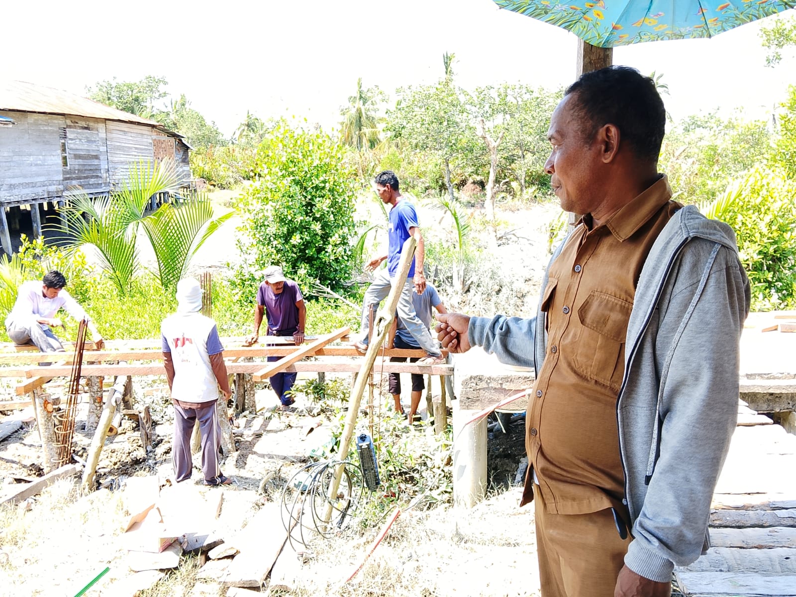 Jalan jembatan sepanjang kurang lebih 100 meter (setara dua tiang PLN) sebelumnya terbuat dari papan pohon kelapa yang sudah lapuk dan patah, sehingga sering menyebabkan warga terjatuh. Kondisi ini membuat akses masyarakat menjadi sulit dan berbahaya.