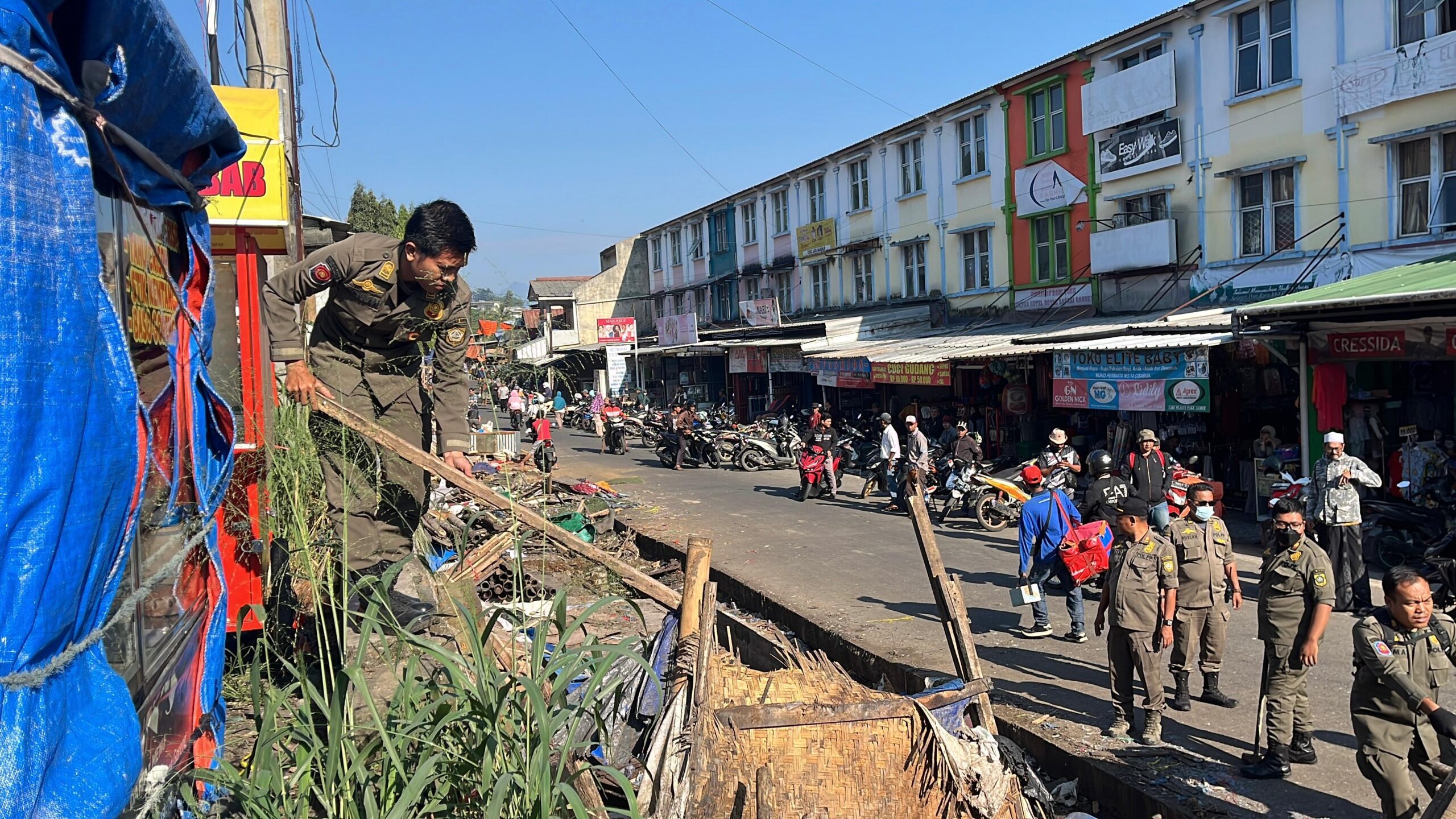 Pantauan di lokasi menunjukkan bahwa sebagian besar pedagang telah melakukan pembongkaran secara mandiri sehari sebelum petugas tiba, menyusul diterbitkannya surat edaran kepada para pedagang mulai dari pintu masuk Jalan Gapura hingga ke sekitar jembatan Pasar Cisarua.