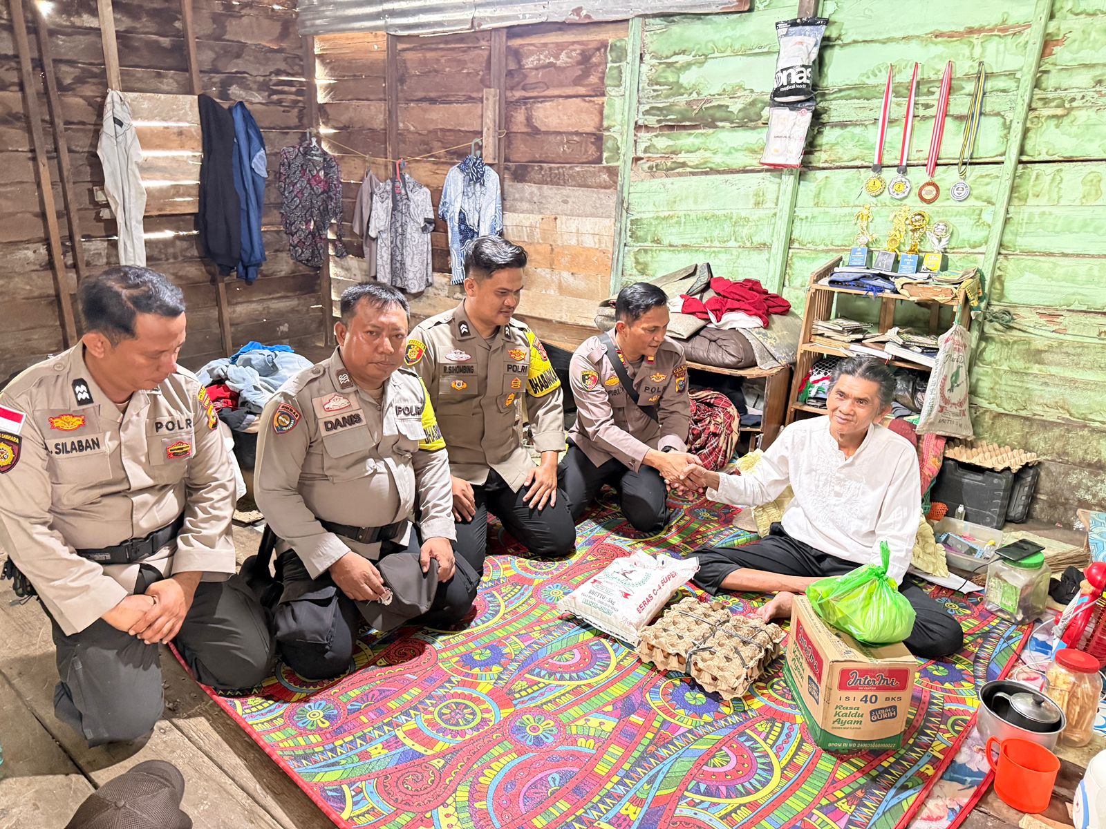 Dalam kesempatan tersebut, Kapolsek Panipahan menyambangi kediaman warga kurang mampu untuk menyerahkan bantuan tali asih berupa bansos. Dua penerima manfaat adalah Bapak Asri Pulungan (59), buruh nelayan di Jalan Pelajar, serta Ibu Rokiah (74), ibu rumah tangga di Jalan Damai, Panipahan Darat.