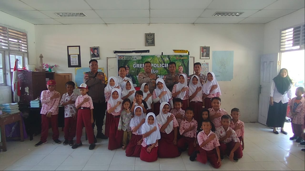 Rokan Hilir | Polsek Panipahan melaksanakan program Green Policing melalui kegiatan penanaman pohon di SD Negeri 001 Panipahan, Kecamatan Pasir Limau Kapas, Kabupaten Rokan Hilir, Kamis (14/8/2025) pagi.