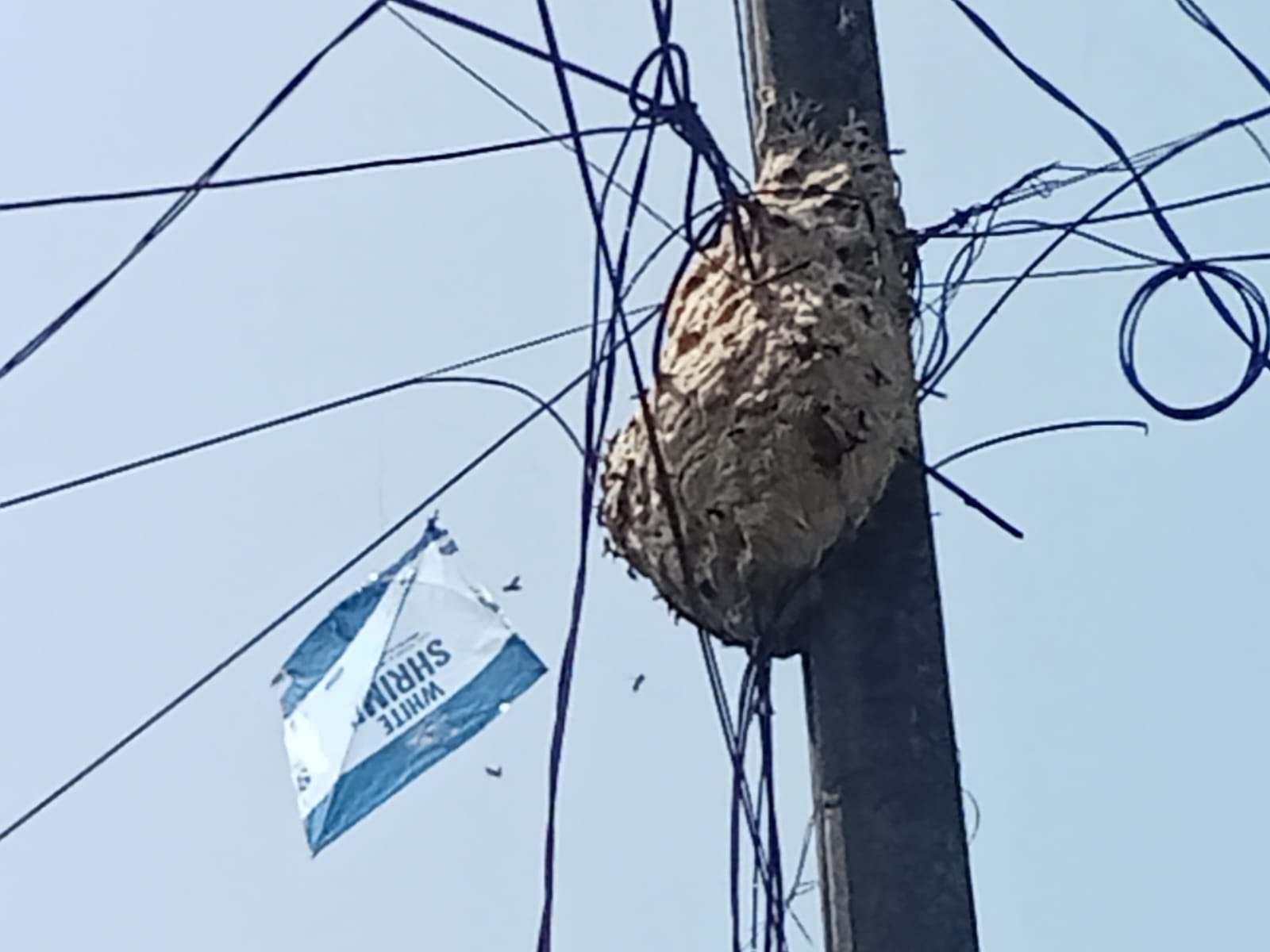 Sukabumi | Keberadaan sarang tawon berukuran besar yang menempel di tiang listrik di Kampung Cimenteng, RT 01/05, Desa Sukamulya, Kecamatan Cikembar, Kabupaten Sukabumi, membuat warga resah dan ketakutan.