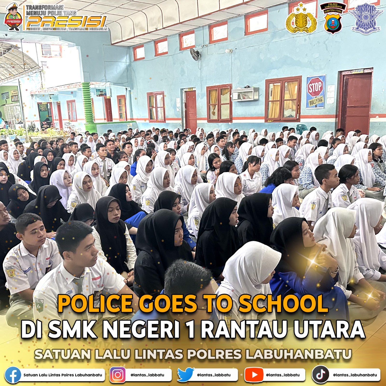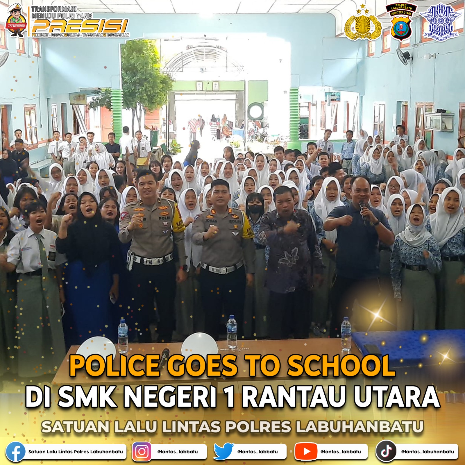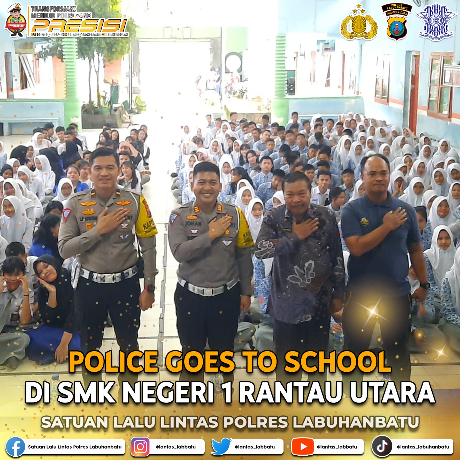 Palapatvnews | Labuhanbatu, Satuan Lalu Lintas (Satlantas) Polres Labuhanbatu telah melaksanakan sosialisasi tertib berlalu lintas kepada siswa SMKN 1 Rantau Utara Kabupaten Labuhanbatu. Kegiatan ini dilaksanakan pada hari Kamis, 22 Februari 2024. Sosialisasi tersebut diadakan di Ruang SMKN 1 Rantau Utara dan dipimpin oleh Kasat Lantas Polres Labuhanbatu, AKP Johan Kurniawan, S.I.K., M.A., M.I.K., serta didukung oleh Kanit Laka Polres Labuhanbatu, IPDA Dr. I.M. Sipayung, S.H., M.H., M.M., dan BRIPTU Budi Rinaldi.