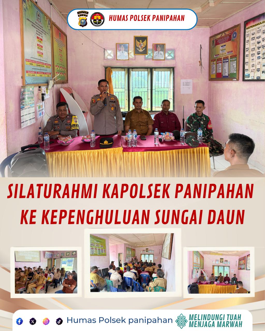 Rokan Hilir, 27 April 2026 – Guna menjaga situasi keamanan dan ketertiban masyarakat (kamtibmas) tetap aman dan kondusif, Kapolsek Panipahan beserta jajaran melaksanakan kegiatan silaturahmi sekaligus penerapan pendekatan cooling system di Kantor Kepenghuluan Sungai Daun, Kecamatan Pasir Limau Kapas, Kabupaten Rokan Hilir, pada hari Senin (27/4/2026) sekira pukul 10.00 WIB.