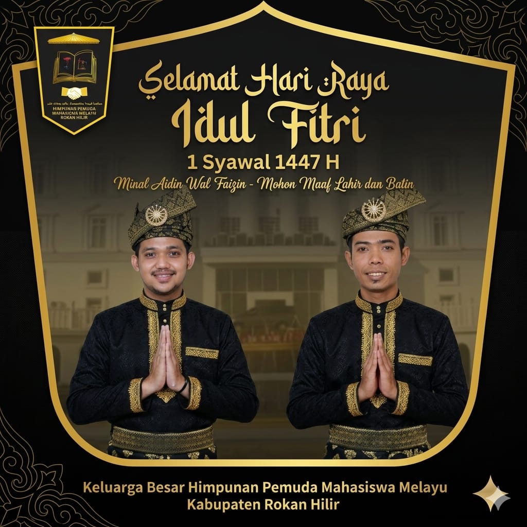 “Atas nama keluarga besar Himpunan Pemuda Mahasiswa Melayu Rokan Hilir, kami mengucapkan selamat Hari Raya Idul Fitri 1 Syawal 1447 Hijriah. Taqabbalallahu minna wa minkum, mohon maaf lahir dan batin,” ucapnya.