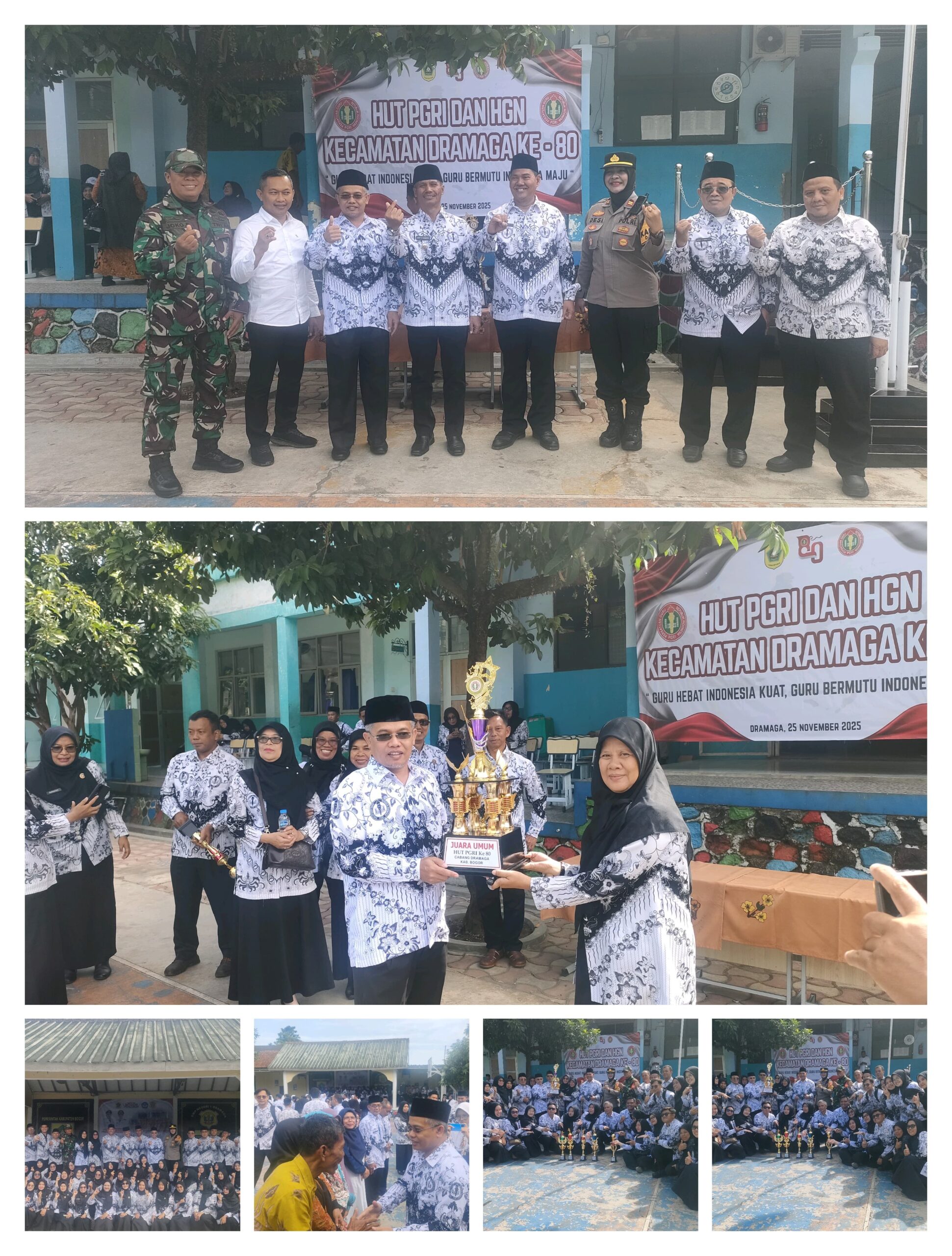 Bogor — Peringatan Hari Guru Nasional dan HUT ke-80 Persatuan Guru Republik Indonesia (PGRI) di Kecamatan Dramaga berlangsung khidmat, tertib, dan penuh makna. Upacara yang digelar serentak ini diikuti ratusan guru, tenaga pendidik, serta jajaran Forkopimcam.